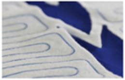 不織布に耐屈曲構造の極細コード状ヒーターを溶着し、柔軟性と摺動耐久に優れます。